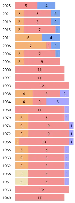 In 2021, the Conservatives overtook the Liberals for first place in terms of vote share in the region, but no seats changed parties.