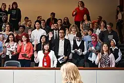 The Minister of Immigration, Refugees and Citizenship has discretionary power to waive language and citizenship test requirements for any candidates in compassionate circumstances, and the citizenship oath requirement for applicants with mental disabilities. The Minister also may grant citizenship extraordinarily without any requirements to persons who are stateless, subject to "special and unusual hardship", or have made exceptional contributions to the country.[87] These atypical grants have been conferred more than 500 times since 1977, often on athletes competing for Canada internationally.[88] The Parliament of Canada occasionally bestows honorary Canadian citizenship on exceptional foreigners, but this distinction is symbolic and does not grant awarded individuals substantive rights in Canada.[89]