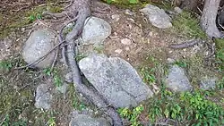 As the trail loops west to follow the coastline, rocks of the 439 Ma Ordovician-Silurian Jumping Brook Metamorphic Suite are exposed. This suite consists of metamorphosed siltstone, wacke, conglomerate, arkose, and minor rhyolite. In the midst of this suite may be found the 379 Ma Devonian granite of the Gillanders Mountain Pluton. The trail encounters a 439 Ma Cambrian granite before it exits the park at La Rigoueche.[19]