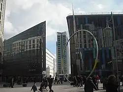 The Hayes, Cardiff with Cardiff Central Library (right)