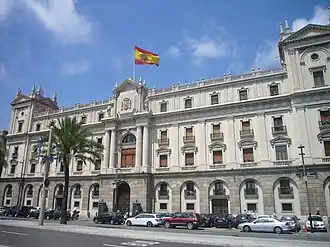 Facade of the Captaincy General building on Paseo de Colón in Barcelona, where General Goded barricaded himself. After his surrender, Caridad Mercader persuaded the militiamen to respect his life and hand him over to the president of the Generalitat, Companys.