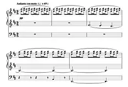 The published piece has its origin in an improvisation during a concert given by Vierne in 1924 in Westminster Cathedral, at which event it is rumoured that Vierne's friend Henry Willis III, the builder of the Westminster organ, hummed the tune for the composer upon Vierne's request.[1] The rumour continues that either Willis hummed the tune incorrectly or Vierne misheard his friend upon transcription; in any case Vierne misquoted the second quarter of the chimes. Instead of jumping up a third from the tonic, dropping down a whole step, and landing on the fifth, Vierne's version moves up in whole steps to the third before moving down to the fifth. Vierne then stays on the fifth, leaps to the second, then third note of the scale and ends on the tonic. There is debate among musicologists as to whether or not the Willis rumour is true, or if Vierne altered the melody to suit his own purpose (and certainly the 1927 composed and published version does not attempt to 'correct' such a possible 1924 misunderstanding of the melody to match the Westminster Chimes).[2] However, at some points in the piece, Vierne uses this second phrase in its correct "Westminster" version.
