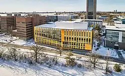 In 2021, Carleton completed construction on the Nicol Building, the new home of the Sprott School of Business. Located in the heart of Carleton's campus, the Nicol Building was designed by Hariri Pontarini Architects and provides 115,000 square feet of new, collaborative learning space.[36] The cost of the building was estimated at $65 million, but was offset through a sizeable donation of $10 million from the late Ottawa real estate developer Wes Nicol, for whom the building is namesake.[37]