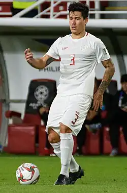 In September 2011, he joined the national team training pool and was named in the final 20-man squad for the 2011 Long Teng Cup and the provisional Philippines under-23 squad for the 2011 Southeast Asian Games.[11][12] In the Long Teng Cup, he made his full international debut in the 3–3 draw against Hong Kong.[13]