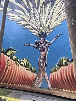The Carmen Miranda Museum is home to the largest collection of original items that were used by Carmen Miranda. These include her costumes, jewelry and personal items. Additionally, the museum also houses textual and iconographic documentation, providing a comprehensive view of her life and career.[7] Along with film scripts with notes by Carmen and a collection of newspapers and magazines, the collection totals 3560 items, such as her famous bracelets and the skirt she wore at the première of her show on Broadway, in the United States; the clothes she wore for her tribute in the forecourt of the Grauman's Chinese Theatre as well as the clothes she wore on her last performance in 1955.[8][9][10]