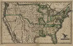 Antebellum map of the United States, published by Sidney E. Morse in An Atlas of the United States (1823), showing the recent acquisition of Missouri and Louisiana, and the remnant of the Northwest Territory after the establishment of Ohio, Indiana and Missouri
