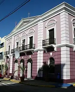 Casa Alcaldía de Arecibo (Spanish for Arecibo City Hall), formerly known as the Casa Consistorial, is the historic city hall and municipal administrative headquarters of the Puerto Rican municipality of Arecibo located in the Plaza Mayor in downtown Arecibo (Arecibo Pueblo).[1] Constructed by the Spanish between 1850 and 1866, more than 155 years ago, this government building exhibits the standard Neoclassic style that distinguishes the Spanish architecture of the time.[2] The building was added to the National Register of Historic Places in 1986,[3] and to the Puerto Rico Register of Historic Sites and Zones in 2000.[4]