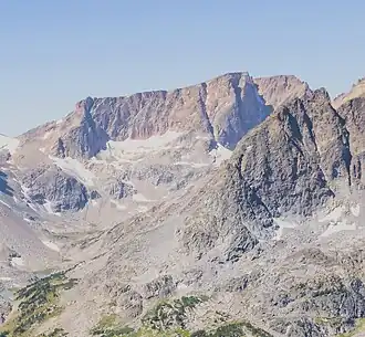 Castle Mountain (12,617 feet (3,846 m)) is in the Beartooth Mountains in the U.S. state of Montana,[3] about 15 miles (24 km) east-northeast of Cooke City. It is located in the Gallatin National Forest and Custer National Forest, just outside the northern boundary of Yellowstone National Park in the Absaroka–Beartooth Wilderness.