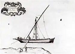 Jean Jouve in the album Plans of all ships sailing the Mediterranean Sea (in French, Dessins de tous les Bâtiments qui Naviguent sur la Méditerranée) from 1679, shows these four images of single-mast tartanes:[36]
