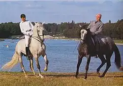 • Orphée RBO: Lusitano stallion born in 1980. Michel Henriquet bought the horse in 1983 and trained him for the next five years. He then passed the ride over to his most talented student, rider Catherine Durand (to become Catherine Henriquet) who would start the horse in the show ring. Durand was a novice at showing and brought the horse through the levels, from Prix Saint George to Grand Prix in just two years. Four years after their competition debut, the team was selected to represent France at Barcelona's Summer Olympics.[5] Orphée was the first Lusitano horse ever to show in a summer Olympics. Making it 25th in individual and ninth as team, they were the second best French horse rider team at those games. The horse retired as a stud stallion in Portugal in 1996.