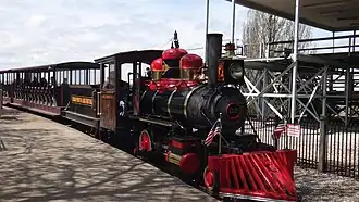 By 1991, it had been restored for Bill Norred, who was planning a Victorian village in Southern California. Norred traded it to Disney for five of the original 1955 Santa Fe & Disneyland Railroad closed coaches (part of the Retlaw 1 passenger train), which had been out of service for nearly twenty years. The engine was too large for Disneyland, and was sent to Walt Disney World where it was named after Ward Kimball. It was placed on display at Epcot before being traded to Cedar Point in 1999 from Walt Disney World for the Maud L., one of the Cedar Point & Lake Erie Railroad original engines running since 1963. The engine sat in the back of the engine house for years and was finally sent to Knott's Berry Farm in California to be restored in 2010.[11] In late 2011 it returned to Cedar Point and was run in late August that year after being converted to a 2-4-0 type tender engine by the CP&LE RR crews.[12] In 2013 for Cedar Point & Lake Erie Railroads 50th Anniversary the "Davenport" (which was its nickname until it got a name) was renamed G.A. Boeckling, after one of Cedar Point's previous owners. Meanwhile, the former Maud L. of the CP&LE RR was restored to service in 2005 at Disneyland, where it operates as the new Ward Kimball, locomotive #5 of the Disneyland Railroad.