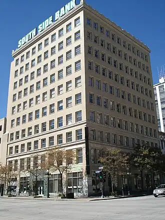 The Central National Bank Building, also known as the Central Building, is a ten-story building located at 103 Southwest Adams Street in downtown Peoria, Illinois, United States. It was designed by the architectural firm of Daniel Burnham in 1913–1914; Burnham himself had died two years before its completion, and at the time his office was the largest architecture firm in the world. The building has a Renaissance Revival design, a popular style at the time. The design features pilasters dividing the windows on the first two floors, spandrels above the first-floor windows, and terra cotta cornice lines above the second and third floors.[2]