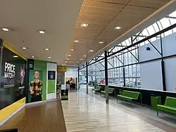 The mall, built in the late 1970s, contains 20 shops, with the key tenant being Dunedin's largest supermarket, Centre City New World.[1] Other shops include several clothing retailers, chemists, a cafe, a musical instrument retailer, a health food store, craft shops, and a florist. The design of the centre (excluding New World) is roughly square and single-storeyed, with a block of shops in the centre of a corridor loop, with the other shops to the outside. The New World supermarket extends from the southeastern end of this square along Castle Street. To the north is the mall's car park, which also has a subterranean level beneath the mall itself.