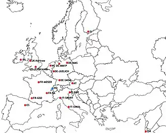 Location of CECAM Nodes (red) and HQ (blue)