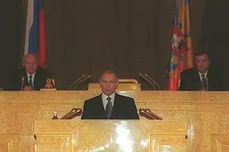 - ^ "Why do we have a third person in the State Chairman of the Federation Council? Because it is a federation, it is not dissolved, it is permanent. "- Sergey Shahray