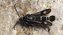Chamaesphecia nigrifrons is a moth of the family Sesiidae. It is found in central and south-eastern France, Corsica, Luxembourg, South Belgium, south-western Germany, Austria, south-eastern Czech Republic, eastern Slovakia, Hungary, Croatia, Slovenia, former Yugoslavia, Serbia, southern Republic of Macedonia, Bosnia and Herzegovina, Bulgaria, northern Romania, northern Greece, southern Ukraine (the Crimea), Transcaucasia, north-western and southern Turkey and north-western Syria.[2]