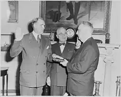 After returning to General Electric in 1945, Wilson began an anti-union campaign.[6] He also served President Harry S. Truman as the chairman of the blue-ribbon President's Committee on Civil Rights in 1946–47. The committee recommended new civil rights legislation to protect "all parts of our population." In December 1950, Wilson left GE again to serve Truman as director of the new Office of Defense Mobilization,[4] which imposed controls on the US economy during the Korean War, such as rationing raw materials for civilian production. This position became so powerful that the press began dubbing Wilson the "co-president." After a bitter dispute with his own Wage Stabilization Board, which had recommended wage increases for unionized steel workers without his knowledge, Wilson resigned from his post in March 1952. He had intervened in the dispute to support the steel industry's demand for price increases to offset the wage increases, only to see Truman back the WSB.