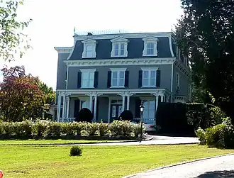 Built in 1869 and designed by Charles Homer Davis, it is a clapboard-sided, three-bay wide, double-pile, 2+1⁄2-story Second Empire–style house. It features a truncated tower on its south side, a porch that spans the ground floor on the front side and a mansard roof.[2]