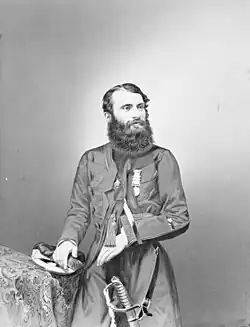 Maitland sat as a mourner for the Grenadier Guards at the funeral of the Duke of Wellington in November 1852.[9] The following year the Crimean War began, with Maitland serving in the war as an assistant adjutant-general to the 4th Infantry Division.[1] Promoted to captain and lieutenant colonel without purchase in September 1854,[10] he was seriously wounded at the Battle of Inkerman on 5 November 1854.[1] For his service in the war he was appointed to the Legion of Honour by France in August 1856,[11] in addition to being decorated in March 1858 by the Ottoman Empire with the Order of the Medjidie, 5th Class.[12] In February 1860, he was promoted to brevet colonel.[13] In September 1868, he was appointed major of the Royal Hospital Chelsea,[14] an appointment he held until 1874 when he was promoted to major-general.[15][16]