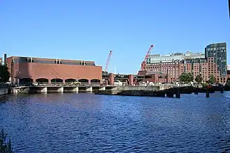 ![]() Charles River Dam. Pump building is on the left, locks are towards the right. | |