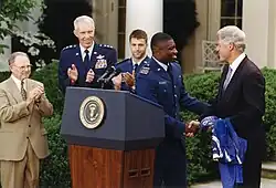 Jackson accepted an appointment to the United States Air Force Academy, and he participated in football and indoor track and field as a student-athlete. One of his many football highlights was his sophomore season performance against the United States Naval Academy in 1997. In front of the largest crowd in Navy-Marine Corps Memorial Stadium history, undefeated and #16 ranked Air Force traveled to Annapolis and defeated Navy 10–7. Jackson was named player of the game and subsequently conference player of the week. Following his senior football season, Jackson was selected by his teammates as a permanent team captain and recipient of Air Force football's highest honor, the Brian Bullard Award, as the player who displays unselfishness, pride in his role, total team commitment, and 110 percent effort. Jackson helped Air Force become a consistent member of the Top 25 national rankings, including a Top 10 final ranking and conference championship in 1998.