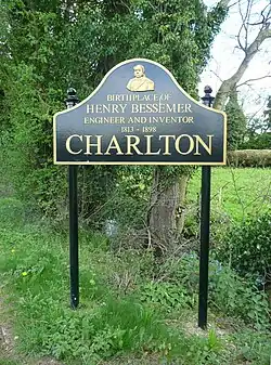 Charlton House is a Grade II listed building and the birthplace of inventor Henry Bessemer in 1813.[2] At the time his father, Anthony Bessemer, operated a type foundry in the village.[3][4] The mill-wheel was adapted by his grandfather to power a small foundry. The water-mill was therefore converted to a foundry during the occupancy of the Bessemer family and back to a mill again afterwards.[5] There are remains of a windmill less than half a mile from the Windmill pub from which it may have taken its name. There was, until the 1970s, also a water-wheel in the mill-race in the yard of Wellhead Farm.