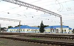 To the north the city is passed by DebaltseveZverevo railway line. The train station Krasna Mohyla is located within the city limits.[2]