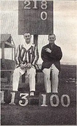 HW Hodgson and WE Jones in 1921 pose for the camera after adding an unbeaten 218 v Durham at Burnmoor