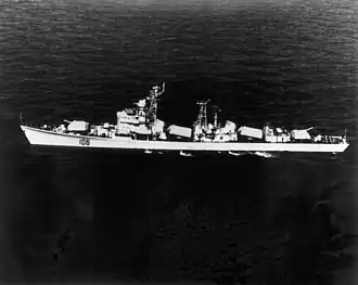 The PLAN began designing a warship armed with guided missiles in 1960 based on the Soviet Neustrashimy, with features from the Kotlin-class destroyer, but the Sino-Soviet split stopped work. Work resumed in 1965[1] with nine ships being ordered.[2][1]