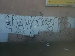 Chicano/a youth who adopt a cholo or chola culture endure criminalization, with police and other institutions equating cholo style with a 'gang member'.[9] While older residents in barrios initially embraced cholas and cholos as "a larger subculture not necessarily associated with crime and violence (but rather with a youthful temporary identity), law enforcement agents, ignorant or disdainful of barrio life, labeled youth who wore clean white tennis shoes, shaved their heads, or long socks, as deviant."[8]