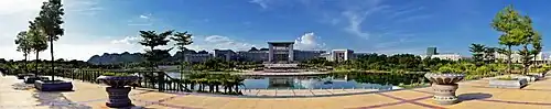 Chongzuo is located in southwestern Guangxi Zhuang Autonomous Region. It borders Nanning to the east, Baise to the north, Fangchenggang to the south and Lạng Sơn, Vietnam to the west.[2] The Zuo or Left River and the You or Right River have their confluence in Chongzuo after which the river becomes the Yong River. Chongzuo is mountainous and hilly with numerous karst formations similar to Guilin and northern Vietnam's Ha Long Bay.[3] Its area is 17,732 km2 (6,846 sq mi), 10,529 km2 (4,065 sq mi) of which is forested.[4]