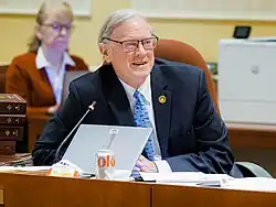 West has a reputation for being "far and away the most moderate Republican in the General Assembly."[19] Although he represents a conservative district, he often works as a man of compromise.[20] In January 2020, the American Conservative Union gave West a score of 40 percent on its annual legislative scorecard, the lowest score among Republicans.[21]
