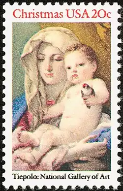 Christmas stamp released in the United States in 1982, featuring a painting by Giovanni Battista Tiepolo