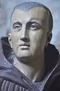 There are two other funerary monuments in the abbey church. The memorial plaque Guntarius covers the tomb of a monk who was buried in the choir between the 9th and 10th centuries.[16] Guillaume Chupin's tombstone dates back to 1440, when this priest had a stone engraved under which he hoped to be buried. But for this to happen, he would have had to be appointed rector of the parish, as he had had engraved in advance, an appointment he did not obtain. On his death in 1449, he was therefore not buried under this stone (the places for the years, month and day are not engraved) which, from 1663, served as the table of the main altar (the stone was damaged on this occasion).[3]