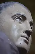 After the construction of the new parish church in 1869, the building was used as a market hall, and the cracked walls had to be reduced in height by 3 meters. However, the discovery of the tomb in 1865 finally restored interest in the site, and work was carried out between 1898 and 1904.[10] As a result, the abbey church was listed as a historic monument in 1896,[11] even though it was no longer in use. It wasn't until 1936 that it was reopened for worship.[12] The same year, a festival celebrated the eleventh centenary of the transport of the relics to the commune. A relic of Saint Philibert was placed in the sarcophagus.[6] Today, the monument is open to visitors, some 9,000 a year.[13] In addition to tours of the building and gardens, art and cultural exhibitions are held in the abbey church. Religious ceremonies are held from time to time, including the "Fête de la Saint-Philibert" (Saint Philibert's Day), with a vigil and a patron saint's mass.[14]