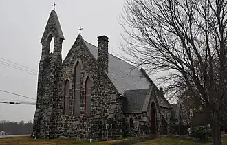 Church of the Holy Trinity, or Holy Trinity Episcopal Church, is a historic Episcopal church located at Churchville, Harford County, Maryland. It is a stone structure built in 1878 in the Gothic Revival style. Its front facade features a triple window of stained glass, consisting of three Gothic-arched lancet windows It also features a steep roof, an architectural chancel at the east end, south porch and sacristy, belfry at the west end, and lancet windows and doors with pointed arches.[2]