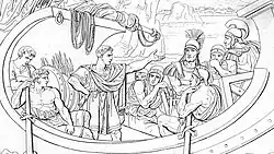 Plutarch recounts a particular custom of the Cilician pirates. When one of their prisoners called out that he was Roman, the pirates would pretend to be scared and beg for mercy. If the prisoner took the pirates' mockery in earnest, they would dress him in Greek athletic shoes and a toga so that they might not repeat the mistake. After they were satisfied mocking him, they would lower a ladder into the sea and, wishing him a fortuitous journey, invite him to step off. If the man would not go of his own accord, they would push him overboard.[13]