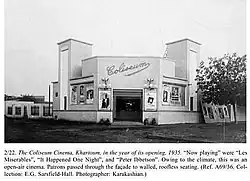 Picture and caption regarding the open air cinema Coliseum in Khartoum, Sudan, 1935