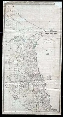 Map of the British possessions and countries adjacent to them west of the Yamuna River, showing the march of Col. Ochterlony, surveyed by F. S. White, 1808, reduced by C. G. Nicholls - The Sikh Empire worried that further aggressions would intimidate the cis-Sutlej chiefs to move further toward developing a firmer alliance with the British.[31]: 540