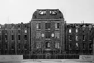 By 1986, the hospital was being considered for demolition because its condition had deteriorated so much.[8] The hospital was demolished in 1994 along with the Delacorte Fountain in a project led by the Roosevelt Island Operating Corporation that also included the earthwork for the future memorial to Franklin D. Roosevelt;[3][9][10] this memorial opened as Four Freedoms Park in 2012.[11]