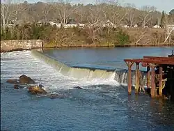 City Mills Dam was a dam on the Chattahoochee River, between Downtown Columbus, Georgia, and Phenix City, Alabama. The dam was built in 1907 to power the City Mills grist mill. Previously, a wooden dam dating to 1828 had existed at the site. The dam impounded a 1.3-mile (2.1 km) run of the river reservoir of approximately 110 acres (0.45 km2).
