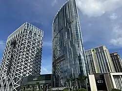 After a two year construction process,[17] The Boulevard, which includes 175,000 square feet (16,300 m2) of retail space surrounding the resort[18] on two levels,[2] was expanded in 2016.[19] The project, developed with DFS, expanded on the original 70 shops and added outlets along Estrada do Istmo, Cotai's main street.[17] In 2017 the Hard Rock Hotel was rebranded The Countdown Hotel,[20] although the Hard Rock Café Macau retained its original branding.[21] In May 2018, Crown Resorts ceased to be a co-owner of City of Dreams, and Crown Towers was rebranded to Nüwa.[20] The resort's fifth tower, Morpheus, opened in 2018 with design by Zaha Hadid Architects[22][23][24] and cuisine by Alain Ducasse.[25][26]