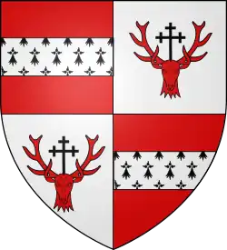 Crest: A stag's head erased Gules, between the attires a cross crosslet fitchée Sable