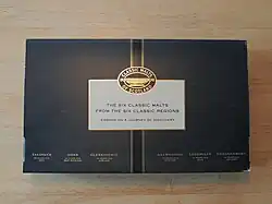 The Classic Malts of Scotland[1][2][3][4][5] is a selection of six single malt whiskies, launched and marketed together in 1988 by United Distillers and Vintners which is now owned by Diageo. They are often displayed together in bars and liquor stores. Diageo has since marketed other single malt labels and expressions with the Classic Malts labeling. The six original malts are: