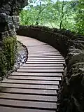 Clifty Falls State Park has ten trails that vary from easy, moderate, rugged and very rugged. Trail two is the only very rugged trail and it is the most rugged trail in all of Indiana. Because of the danger of falling rocks, the end of the trail is blocked from the public. There are old steps, also blocked, that used to lead down to the falls. You can see the falls from an overlook carved out of the side of the canyon.