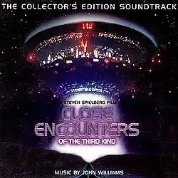 Close Encounters of the Third Kind (Original Motion Picture Soundtrack) is the film score to the 1977 film of the same name, composed and conducted by John Williams and performed by the Hollywood Studio Symphony. The soundtrack album was released on vinyl album (with a gatefold sleeve), 8-track tape and audio cassette by Arista Records in 1977, with a total running time of 41 minutes (it was later released on compact disc in 1990). The soundtrack album was a commercial success, peaking at #17 on the US Billboard album chart in February 1978 and was certified Gold by the RIAA for 500,000 copies shipped.[3] It also peaked at #40 in the UK album charts.[4]