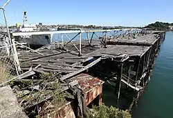 Regular shipping port operations at Morpeth ceased in 1931,[77] but some shipping continued in a small way after that time.[78] Due to wartime constraints on transporting coal by rail, in 1940, coal from Rothbury was shipped at Morpeth but not directly to Sydney; it was brought to the port by road and then sent by barge for transshipment at a downstream river port.[79]