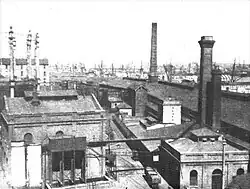 The Dyke, with the Basin on the right, the rail-yard in the foreground and the pump house to the left, 1904 (aerial photograph by Melvin Vaniman)