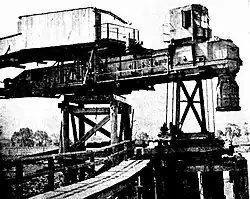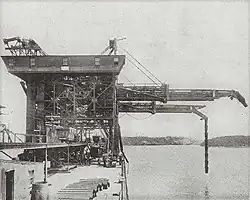 The Carrington coal port used twelve hydraulic cranes powered by water under pressure supplied from a pumphouse nearby.[105] There were also three steam cranes, which had been relocated from Queens Wharf.[60] In 1890, this government-operated facility was capable of loading a total of 12,000 tons per day. The first electric cranes were commissioned at the Basin, in 1916, but at the end of that year needed to be shutdown for a short time, while the power supply was improved. By mid 1917, there were six electric cranes there.[106][107][108]