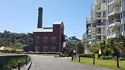 Four of the electrical power stations in Sydney—Bunnerong on Botany Bay, and White Bay, Pyrmont and Ultimo on Sydney Harbour—were supplied with coal by rail. All these power stations were situated close to the waterfront but that was to obtain cooling water not port access.[21][22] Two of the power stations—Ultimo and White Bay—initially were operated by the railways and tramways[22] and all the power stations in Sydney were built after the rail connections from the coalfields to Sydney were completed. While the Bunnerong Power Station was being built, drilling was carried out to a depth of 2,730 feet (832 m) in an attempt to find suitable coal below the area of the power station site; although a seam of "burnt" coal—destroyed by an intruding volcanic dyke—was found at a depth of 2,600 feet (792 m), these efforts were unsuccessful,[23][24][25][26] and it too was supplied with its coal by rail.[21]